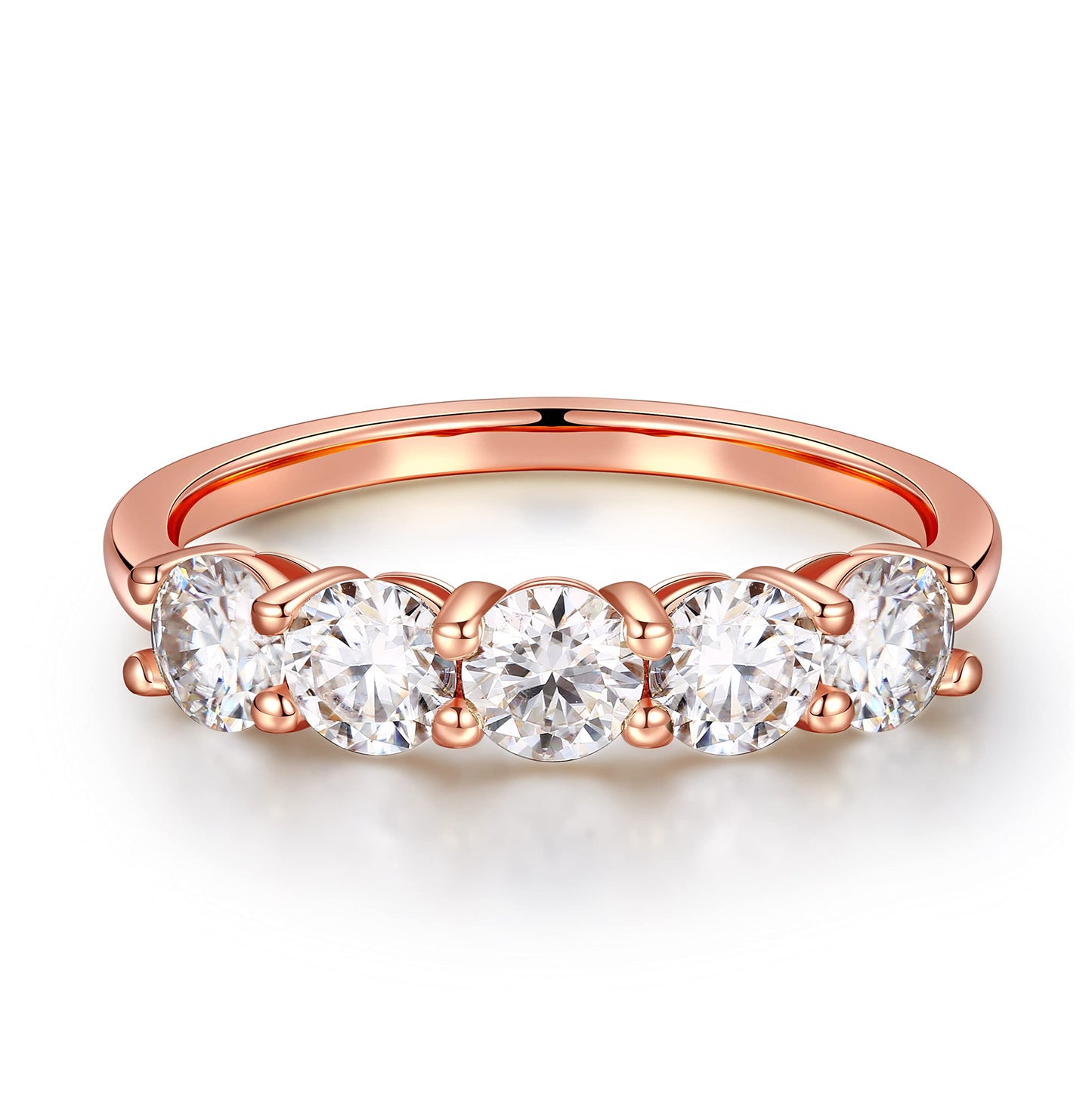 MOOSEA 5 Stone Moissanite Rings for Women, 3.75MM D Color VVS1 Clarity Lab Created Moissanite Anniversary Rings 14K White Gold Filled S925 Sterling Silver 5 Stone Wedding Bands for Women Jewelry
